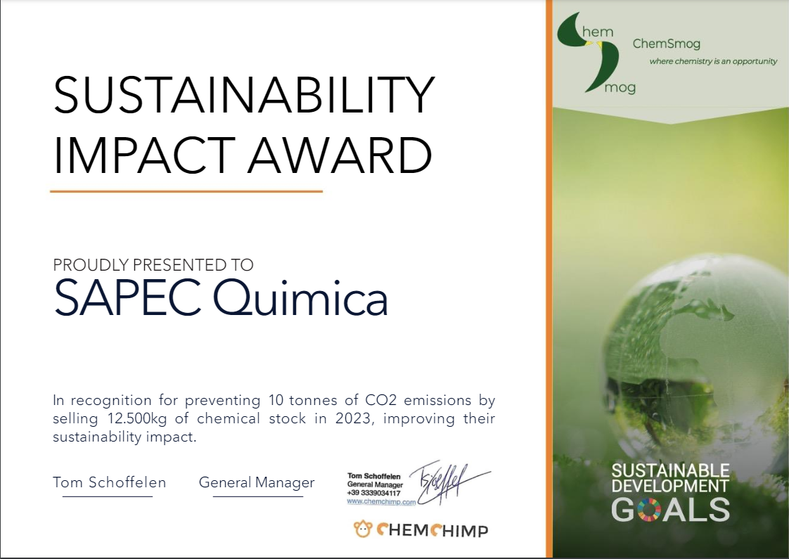 Nesse contexto, em vez de reencaminhar para resíduo os produtos que já não comercializa adotou o procedimento de os vender através da plataforma ChemSmog, participando na redução das emissões de carbono.